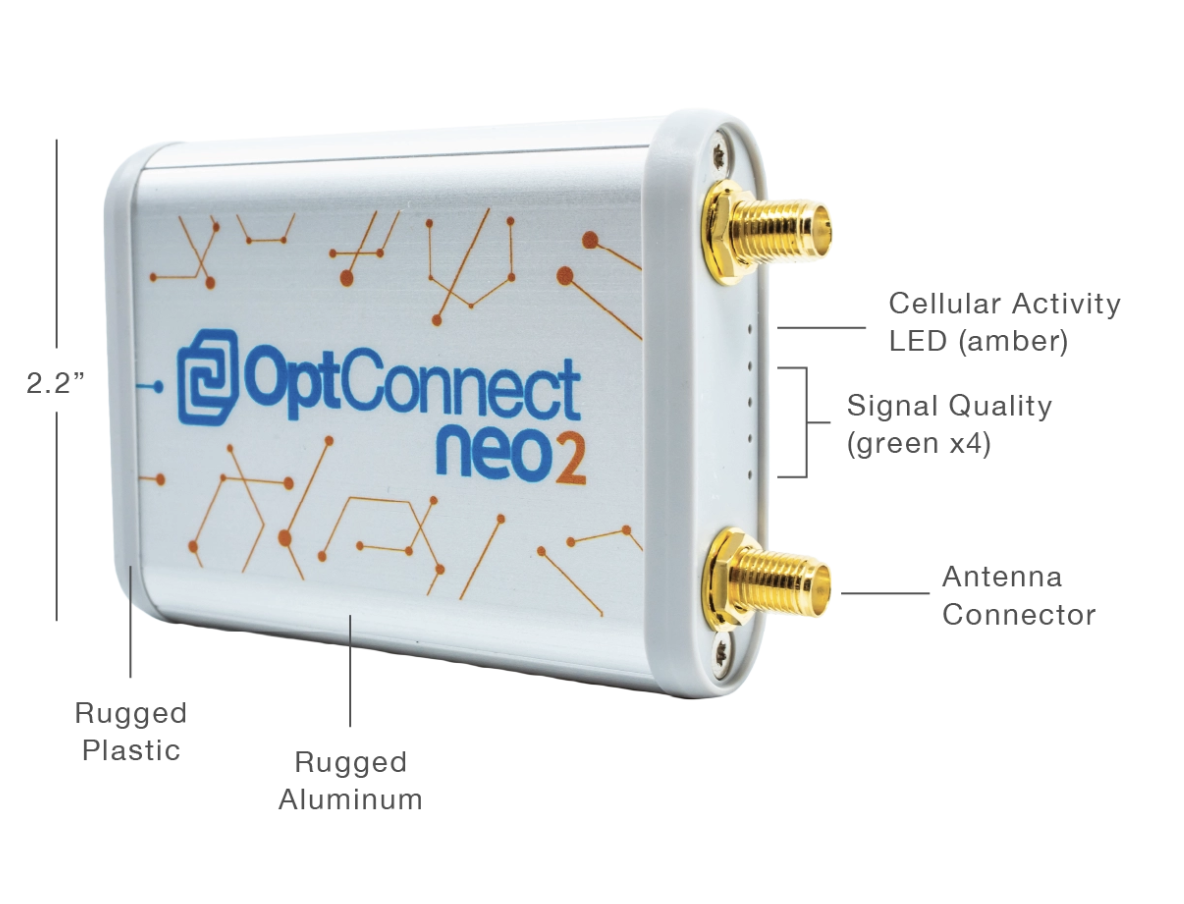 Customers are connecting more devices that need faster access to the cloud and to data. As connectivity to the cloud becomes more critical, downtime becomes more costly. neo2 adds connections, adds speed, and adds carrier redundancy to ensure high uptime. neo2 is a truly compact, full-featured high-speed cellular router that fits almost anywhere so customers can connect their equipment to their cloud services. The dual redundant cellular connections give peace of mind while full integration with OptConnect’s completely managed wireless service makes for a headache-free experience.