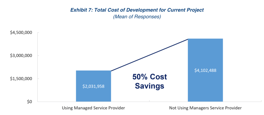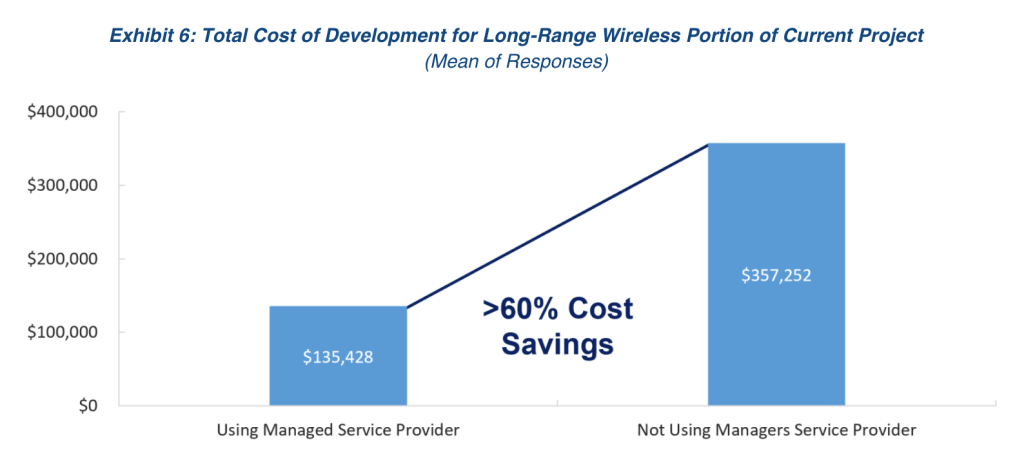 The ability to limit and efficiently address connectivity issues generates a range of cost savings. Connectivity issues will invariably happen for a variety of reasons (carrier downtime, local IT updates, device issues, etc.), so it is important to have solutions in place to minimize disruptions. The use of a managed service provider does just that, reducing the frequency of connectivity issues. The survey found that projects not using an MSP had, on average, two-and-a-half times as many connectivity issues per year [See Exhibit 9]. This omission can result in service disruptions and dissatisfaction among users, not to mention the direct costs to remedy the problem.